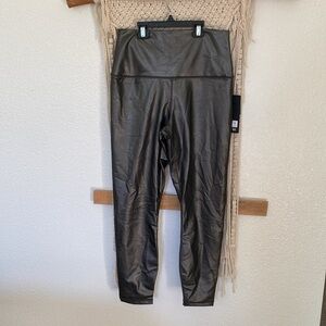 New with tags leatherette brushed inside super high-rise elastic freeway span ankle length leather like leggings size large brand new