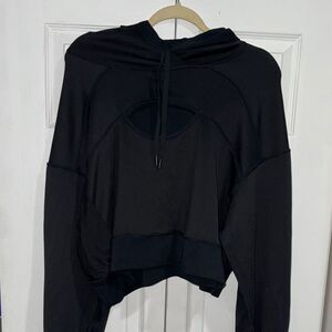 Stylish and comfortable black women's hoodie top, perfect for casual wear.