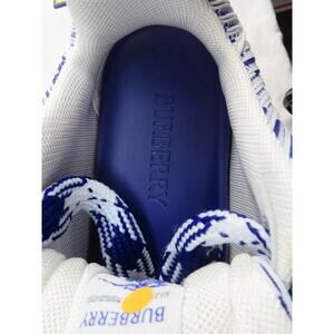$ 900 NIB BURBERRY BOX BLUE CHECK CANVAS LOGO PLATFORM SNEAKERS 13.5 US 46.5 IT