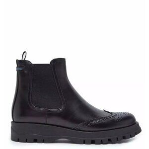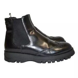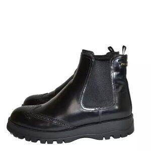 $900 PRADA Leather MOTO BROGUE Wing-Tip Chelsea Boots PLATFORM BLACK 41 (SE29)