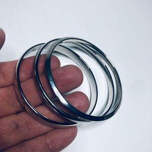 909 Monet lot of 3 smooth bangle signed silver tone bracelet