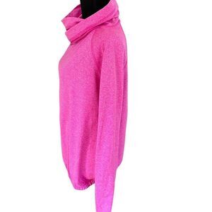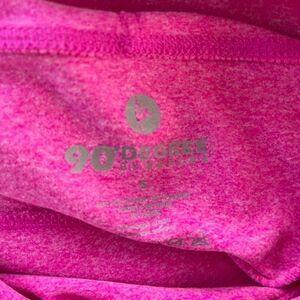90 Degrees by Reflex hot pink polyester spandex cowl neck top size S. Marled look with pink/white , stretchy, drapey cowl neck, long sleeves with thumb holes, elastic bottom at waist. Tonal pink accent stitching. Great workout top, or with jeans. Approximate measurements are pit to pit flat 21”, length from shoulder approximately 25.5”.