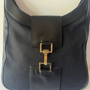 90'S GUCCI VINTAGE JACKIE CANVAS LEATHER HOBO SATCHEL