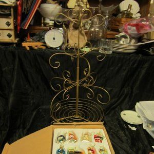 VINTAGE 90'S METAL TREE WITH GLASS ORNAMENTS OF DIFFERENT CHRISTMAS SHAPES IN BOXES