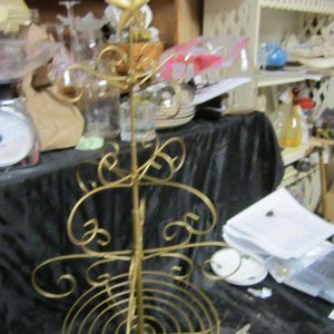 VINTAGE 90'S GOLD TONE METAL TREE SCROLL WORK WITH BASKET BOTTOM WITH GLASS ORNAMENTS TO DECORATE DIFFERENT CHRISTMAS THEME VERY BEAUTIFUL DISPLAY