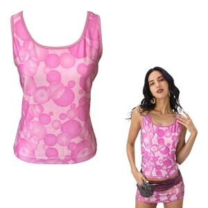 90'S VINTAGE BUBBLE GUM GRAPHIC Pink Lily's Of Beverly Hills tank top MEDIUM