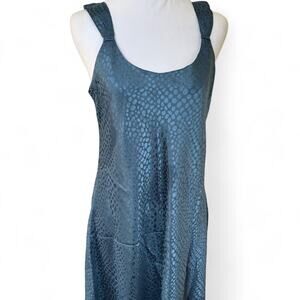 90'S VINTAGE JONES NEW YORK BLUE SATINY MAXI DRESS LARGE.