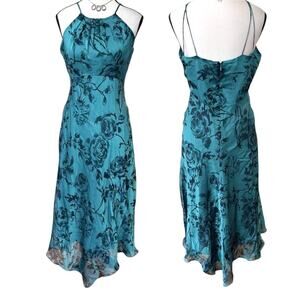TEAL/AQUA ROSES MAXI DRESS EUC SIZE 8 MEDIUM.