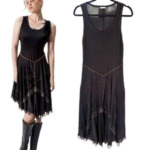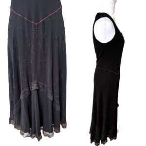 90'S VINTAGE Rozae Nichols Black Lace Whimsy Goth Midi Dress size Medium
