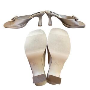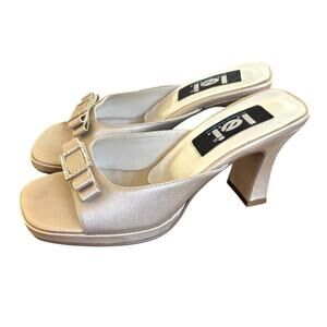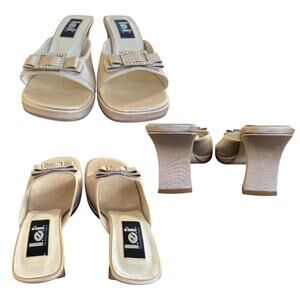 90'S VINTAGE Y2K L.E.I. SATIN CHAMPAGNE NUDE BOW RHINESTONE SANDALS 7.5 LIKE NEW