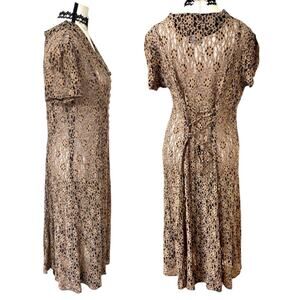 1. NEW RUBY CALIFORNIA MADE IN USA BROWN/BLACK LACE ORNATE BUTTON UP MAXI SHEER DRESS. BEAUTIFUL! ORNATE BEADED FRONT.