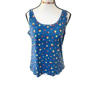 `1) 90'S 100% COTTON RALPH LAUREN BLUE FLORAL TANK MEDIUM.