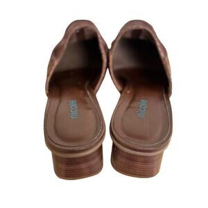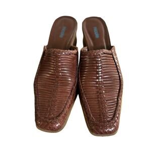 90'S Y2K VTG. BROWN LEATHER NICOLE WOVEN MULES HEELS SZ. 8 1/2