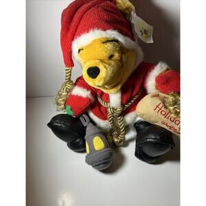 This 12-inch Winnie the Pooh Santa plush with lantern and Happy Holidays bag is the perfect addition to your Disneyana collection.