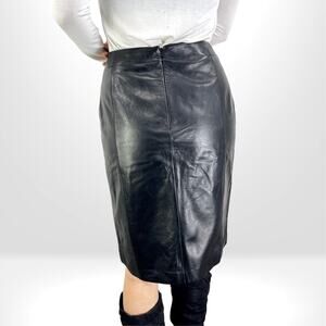 90s ANN TAYLOR Vintage Black Leather Knee Length Pencil Skirt
