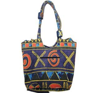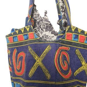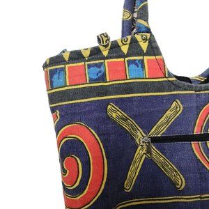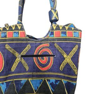 90s Abstract Beach Bag Full Zip Patterned Csnvas Hobo Colorful Geometric