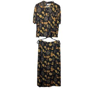 90s All Over Floral 2 Piece Skirt Set Womens M/L Rayon Crinkle Indie Academia