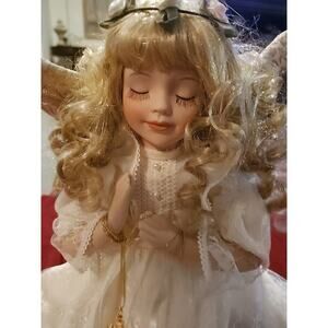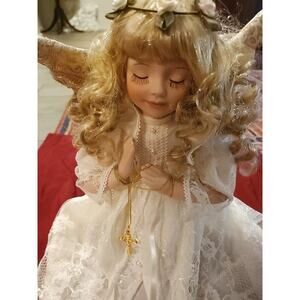 90's Angel collectible porcelain doll Praying Cross Christian Vintage