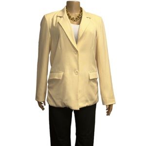 Appleseeds Blazer Buttercup Yellow Single Breasted two button Flap pockets shoulder padded fully lined polyester rayon spandex excellent pre owned condition size 10 measurements are approximately in inches armpit to armpit 21” length 28” armpit to cuff 19”