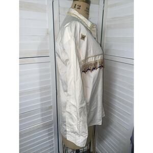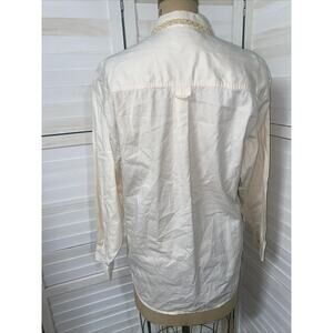 90s At Last Basics Shirt Beaded Aztec Button Up Long Sleeve Ivory Shirt Large