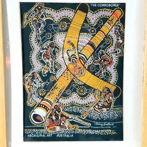 90s Australian Authentic Aboriginal Canvas Art Corroboree Danny Eastwood Framed