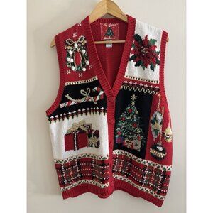 90s Avenue Christmas Sweater Vest Women Size 1X Button Cardigan