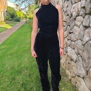 Stunning vintage 90s velvet halter-neck jumpsuit from BB Collection Barbara Barbara.