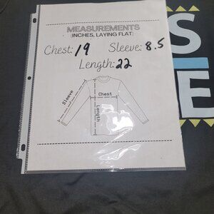 DETAILS: Size MEDIUM women's top (measurements shown in photos). Black with printed Numbers and letters . Short sleeve, crew neck. Loose fit, 100% Polyester.