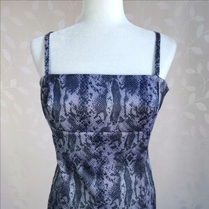 Unleash your 90s baddie with this curve-hugging snakeskin print dress from La Belle. The straight neckline, form fitting silhouette, and reptile print make this a sleek statement piece perfect for night outs, photo shoots, or Y2K styling.