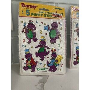 90s Barney Puffy Stickers 5 VTG Lyons Purple Dinosaur Party Favors 2 Packs NEW