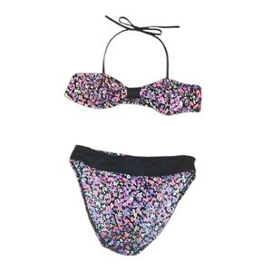 90s Bikini, Bandeau Top, High Rise Bottoms, Bright Floral, Small