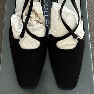 90s Black Satin Heels Slingback Rhinestone Formal Size 7