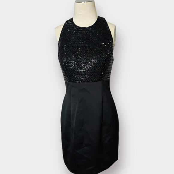 90s Black Tie Oleg Cassini Beaded Mini Dress Size S