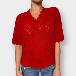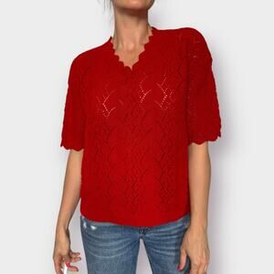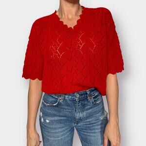 90s sweater top with v neck and elbow length short sleeves. Boxy shape--looks good tucked in or worn out.