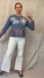 90s Blue Spring Flowers Novelty Print Cotton Ramie Sweater Christopher & Banks M