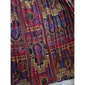 90s Burgundy Red Blue Dark block boho print broomstick skirt M/L