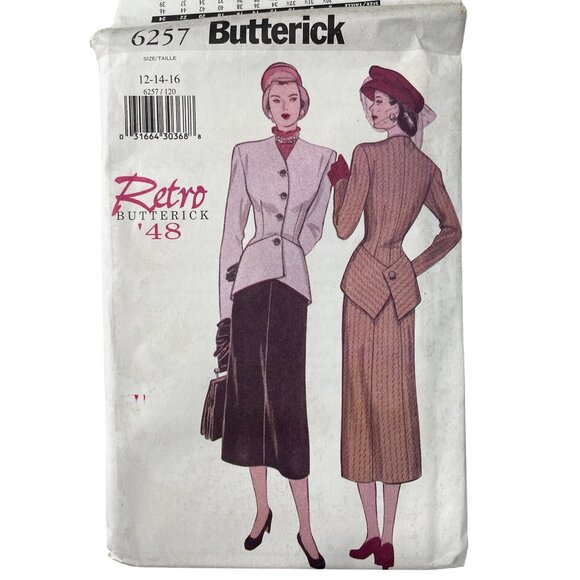 90s Butterick 6257 Retro '48 Pattern Misses Jacket & Skirt Sizes 12-14-16 UNCUT