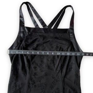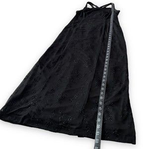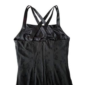 Beautiful long dress, black with glitter, zipper back, cross cross thick straps x in back, rear center slit, its a little big on me- would look even better on a size 8! Very elegant and simple but pretty.