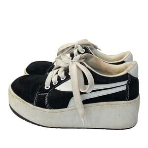 THE MOST AMAZING 90's coasters platform tennis shoes, seriously the most incredible pair of platforms l've ever seen, they don't make 'em like this anymore! The black area is like a soft suede fabric, classic chunky skater laces, very good condition, these are seriously too cool!