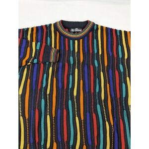 90s Cable Knit Sweater Mens LG Muticolor Cooj Style Grandpacore Alan Stuart Crew