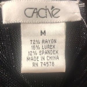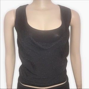 Cache Knit Black layered Tank Top BLACK LUREX 03992443 Shimmer Ribbed Scooped cow neck Size Medium sleeveless stretch comfortable Lux Lurex spandex rayon blend Cache cowl neck sleeveless layered top black Lurex 03992443 metallic Shimmer Measurements are approximately in inches Length: 25” inches Armpit to Armpit 14” inches offers welcome