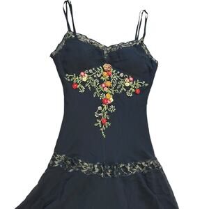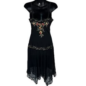 90s Cache Embroidered Silk Handkerchief Hem Dress