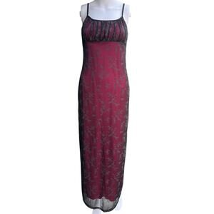 90s Candy Rocket Empire Waist Floral Glitter Mesh Evening Gown Pink Lined Small