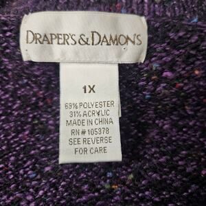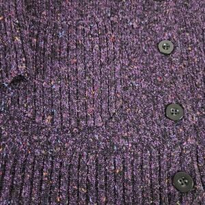 This 90s Chunky Knit Cardigan Sweater in purple with speckled pattern is a vintage piece perfect for the colder seasons. Made of polyester and acrylic knit fabric, this plus size 1X sweater features a crew neckline, long raglan sleeves, and button accents. With a bohemian and 90s theme, it is ideal for casual, workwear, or travel occasions. The pullover style, stretch material, shoulder pads, and pockets add practicality and comfort to this cute and colorful sweater. Machine washable and made in China, this sweater is a must-have for your wardrobe.