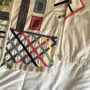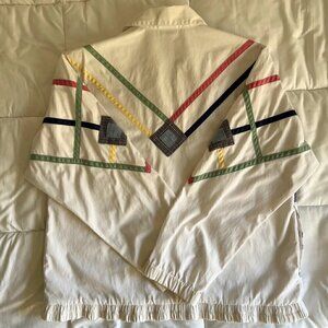 90's Cottage White Windbreaker Jacket w/ Multicolor Striped Plaid Design Size S