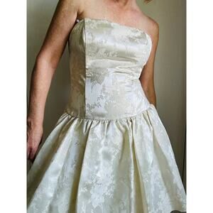 90s Cream Prom Dress Strapless Brocade Size M Fairy tale Coquette Ballerina