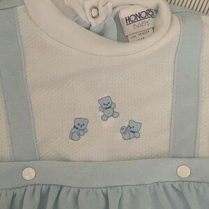 90’s Deadstock 9M Teddy Bear One Piece button up set baby blue