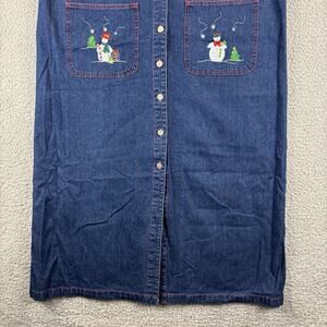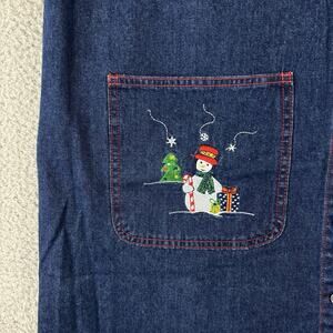 90s Denim Dress Sz 18 Overall Teacher Embroidery Winter Snowman Holiday Bib Midi