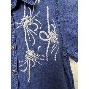 90s Denim Embroidered Dress - Whispers - Small Cottagecore