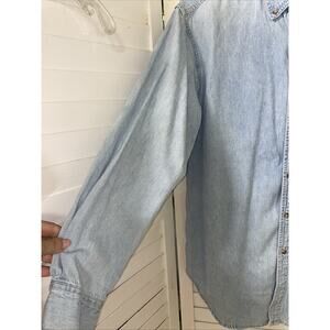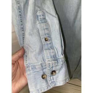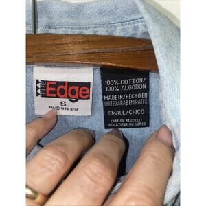 90s Denver Broncos Denim Shirt Light Wash Long Sleeve Embroidered Logo Small